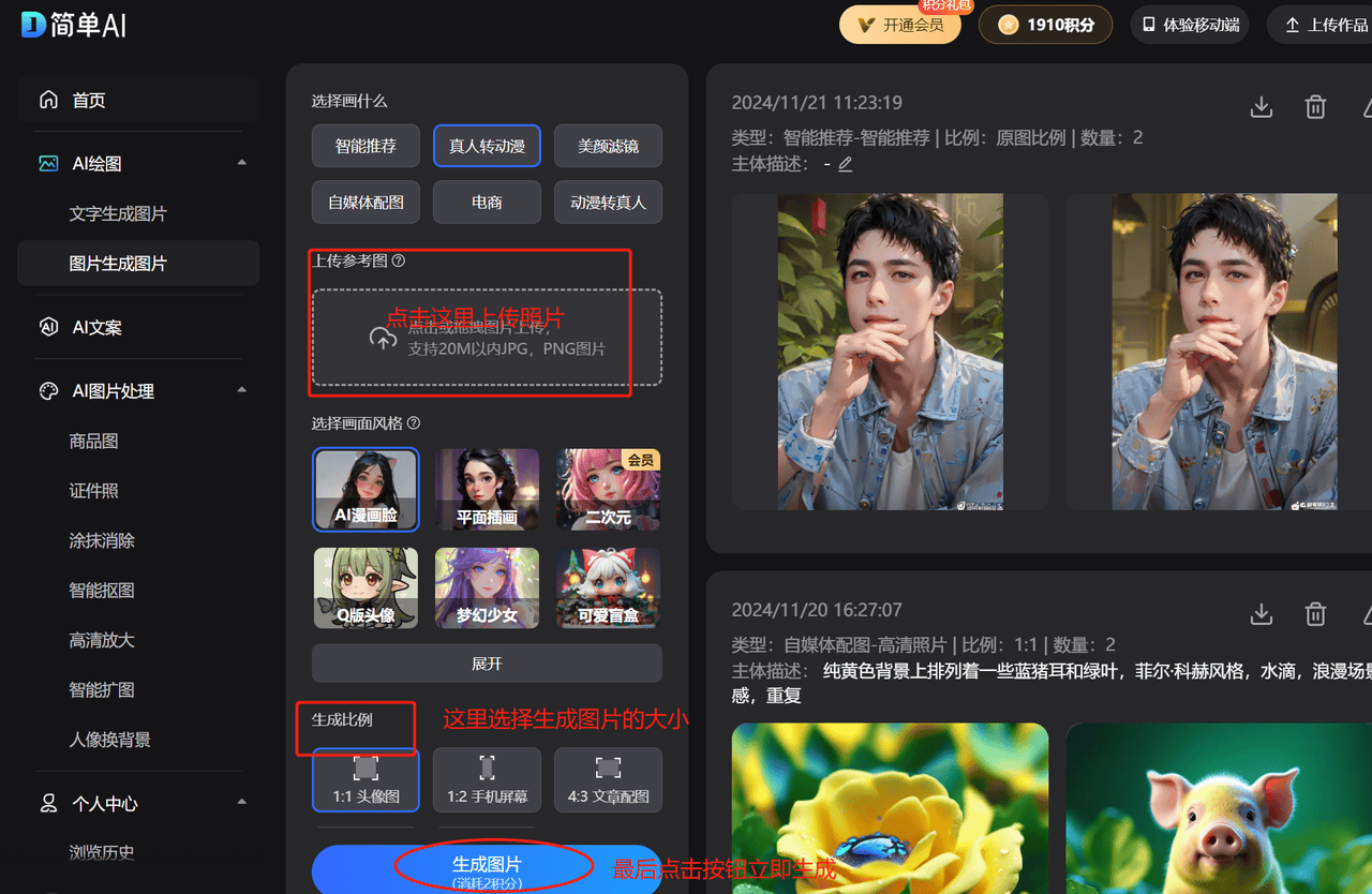 点击红框处,操做简单敌对,这里都能满脚你的设法,支撑“图生图”的操做,很是适合分歧需求的用户。今天我们来聊聊若何快速制做头像,